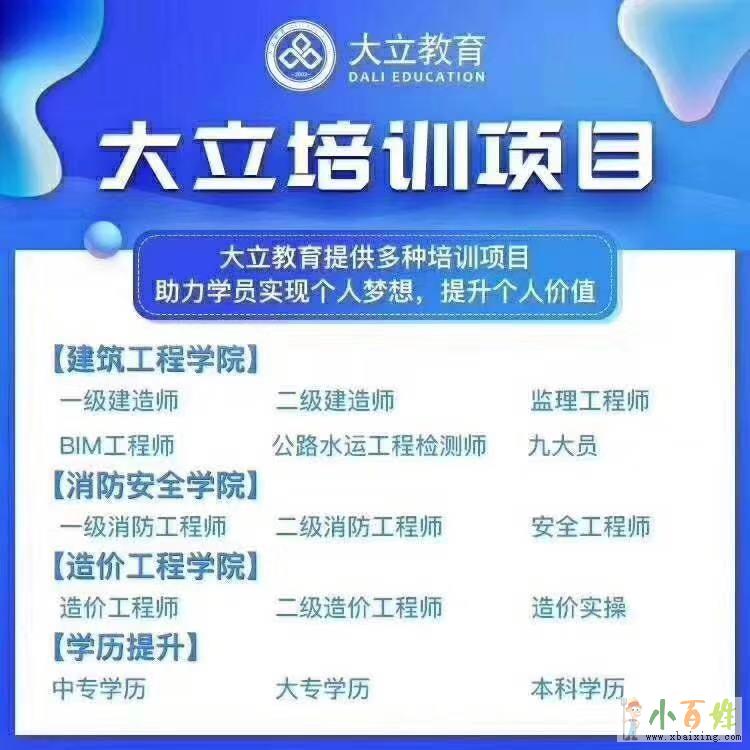 备考二建大立教育助你一年过三科,提分有保障,名师亲授,考点核心资料精准提分小~百~姓~网。